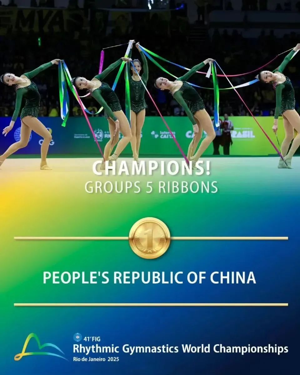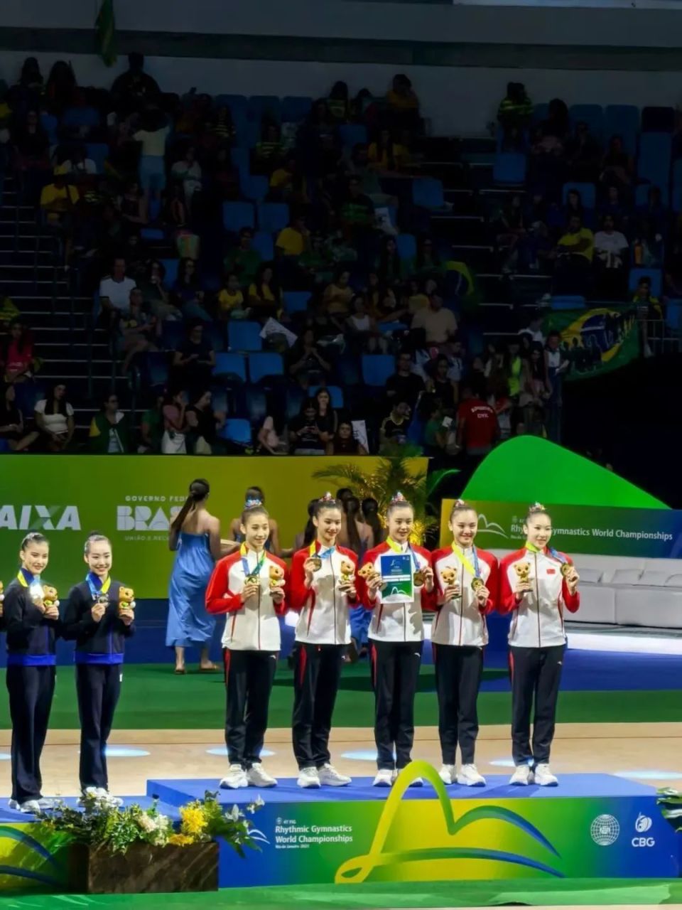 北京时间8月25日凌晨,中国艺术体操队在巴西里约热内卢举行的第41届国际体联艺术体操世锦赛集体项目决赛中,凭借《平潭映象》和《黑悟空》两套节目,斩获5带单项金牌和3球2圈单项铜牌!